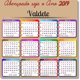 Calendário 2019 - Personalizados - Nomes com a Letra Inicial: V