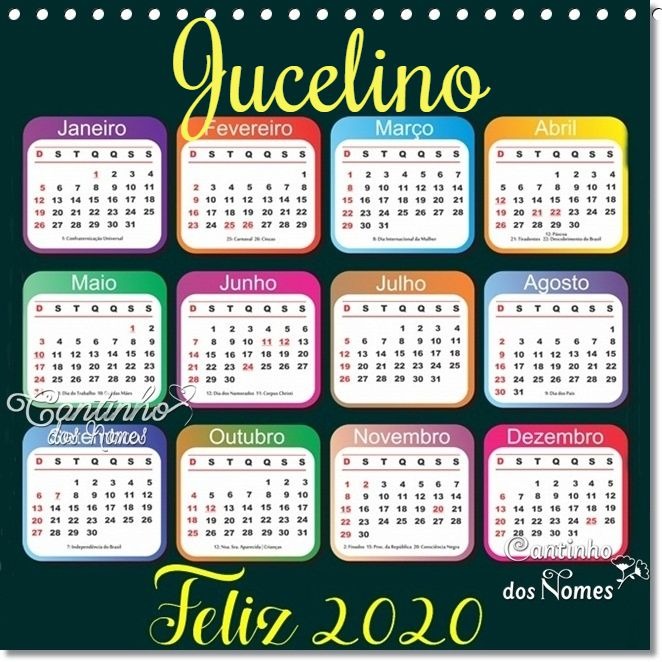 Calendário 2020 - Nomes com as Iniciais: J e K